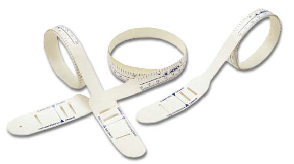 In special, soft, plastic material. Measures diameter of child head up to 60 cm.