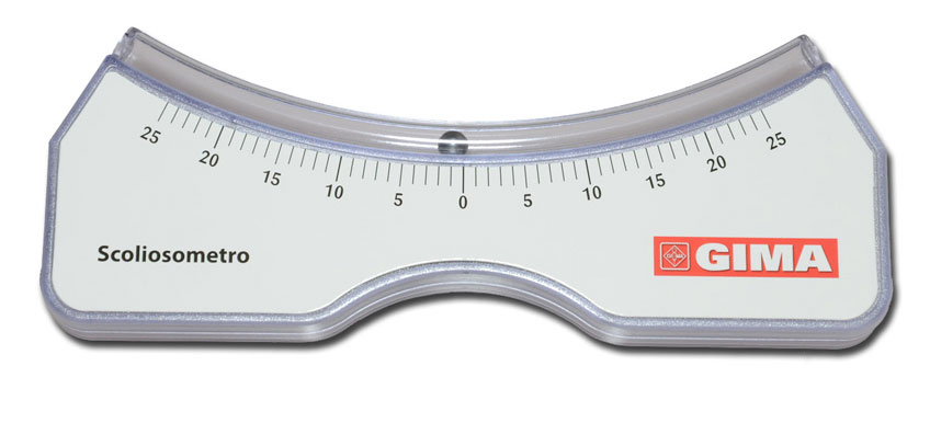 Plastic instrument for the evaluation of the scoliosis (deviation of the spinal column on the lateral, left and right planes).