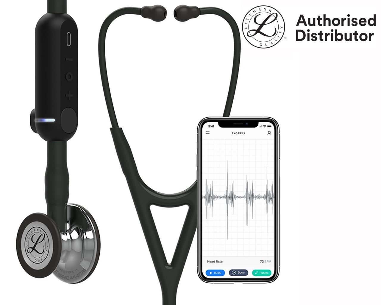 The Littmann® CORE Digital Stethoscope features the outstanding acoustics, comfort and quality of a Littmann cardiology-grade stethoscope enhanced by powerful digital technology. Features like up to 40x amplification and active noise cancellation can help you auscultate with greater confidence. The Littmann® CORE Stethoscope connects with Eko software on a smart device to visualize, record and share data.