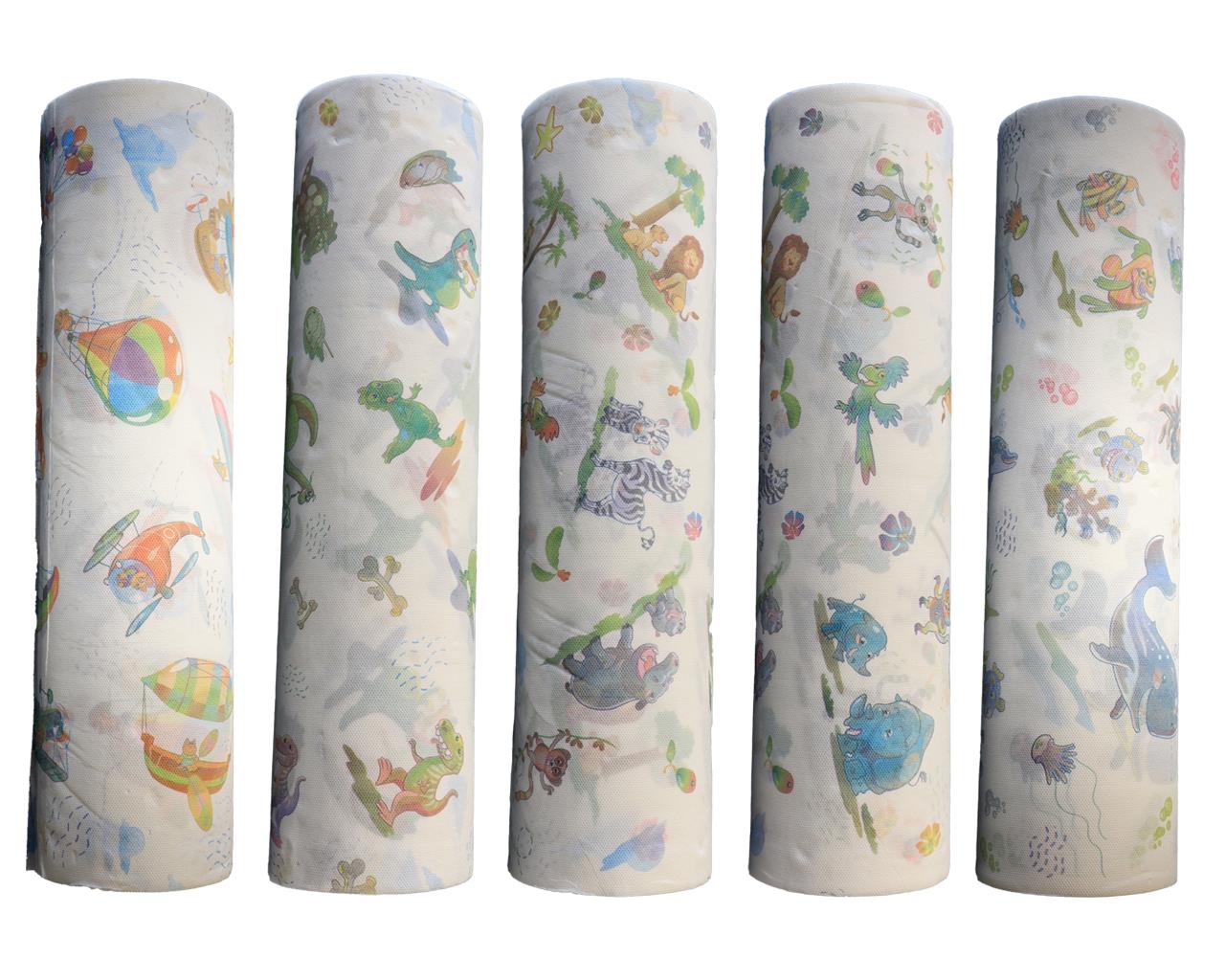 Medical rolls decorated with 5 assorted themes, for pediatric use. Produced in pure cellulose, dermatologically tested. Hypoallergenic inks.