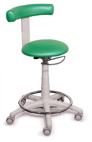 The height can be comfortably adjusted by means of a gas pump; the back-rest is 180° revolving and depth-adjustable.