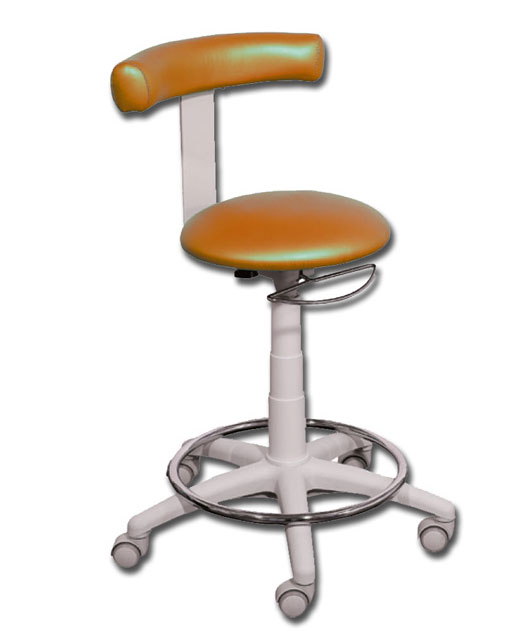 Height can be comfortably adjusted by means of a gas pump; back-rest is 180° revolving and depth-adjustable. Seat is balanced density padded and Peltex-lined.