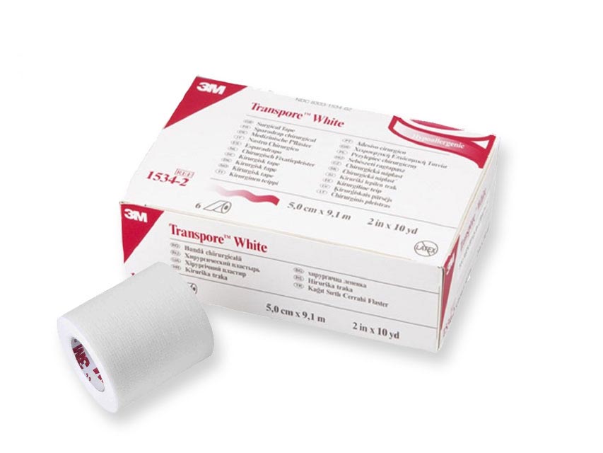 3M Transpore White is a surgical tape made of rayon and breathable polyester that provides a strong adhesion, but an easy application thanks to its chance to be teared in bi-directional way. Strong adhesion up to 72 hours. Water repellent and easy to manage with gloves on.