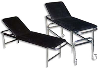 Patient trolley with removable top made of chrome-plated steel tube, and washable self extinguishing plastic material. Comes complete with mattress. Mounted on 4 casters 100 mm. two of which with brakes. Accessories are not included.