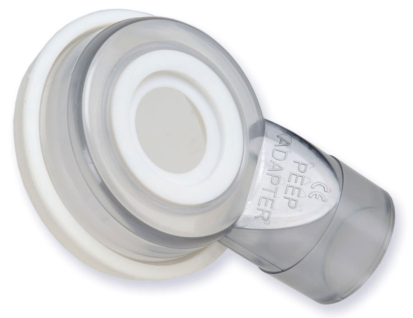 The adapter simplifies the integration of a PEEP valve in single-use or reusable resuscitation circuits; it is sold as a single unit and intended as a spare part or accessory for resuscitation kits. It reduces the need for dedicated components for each mask size, promoting compatibility and speed of use in emergencies.