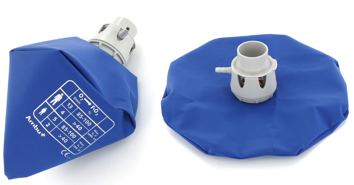 When mounted on the Ambu Mark IV resuscitator, the bag provides nearly 100% O2 at 6 l/min, improving the effectiveness of manual ventilation compared to use without a reservoir. It is autoclavable and made from heat-resistant material to allow repeated sterilization cycles in a hospital environment.