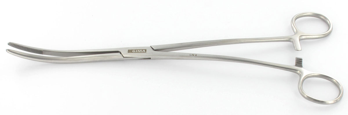 Gynaecology Instruments: Bozeman curved dressing forceps.