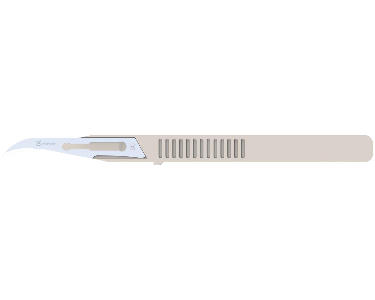 Disposable, sterile, stainless steel stitch cutter.